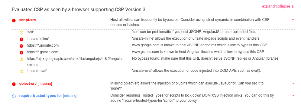 Inyectar HTML sin ejecutar JS puede tener impacto en la seguridad de la página, y es algo que CSP no siempre puede prevenir.